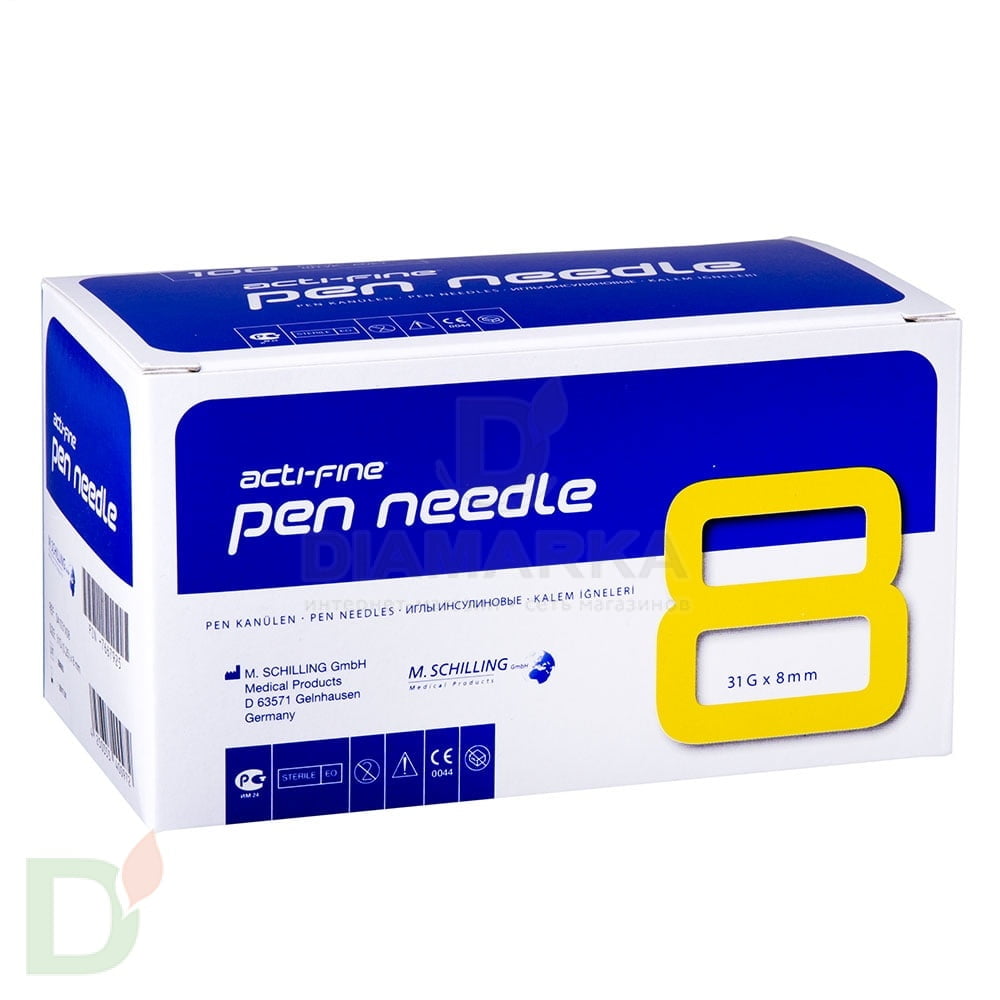 Иглы Акти-Файн (Acti-Fine) 30G, длина 8 мм, 100 штук, для шприц ручек